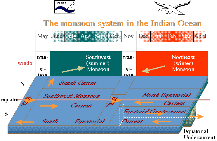 Figure caption: The ocean currents during the North-East and South-West monsoons.