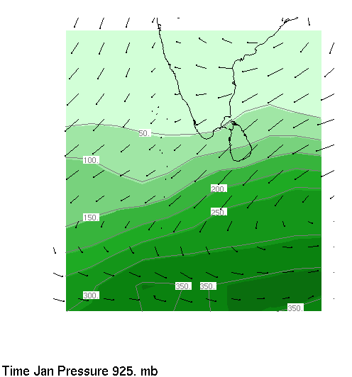 Monthly average rainfall and wind vectors over EquatorialSouth Asia |